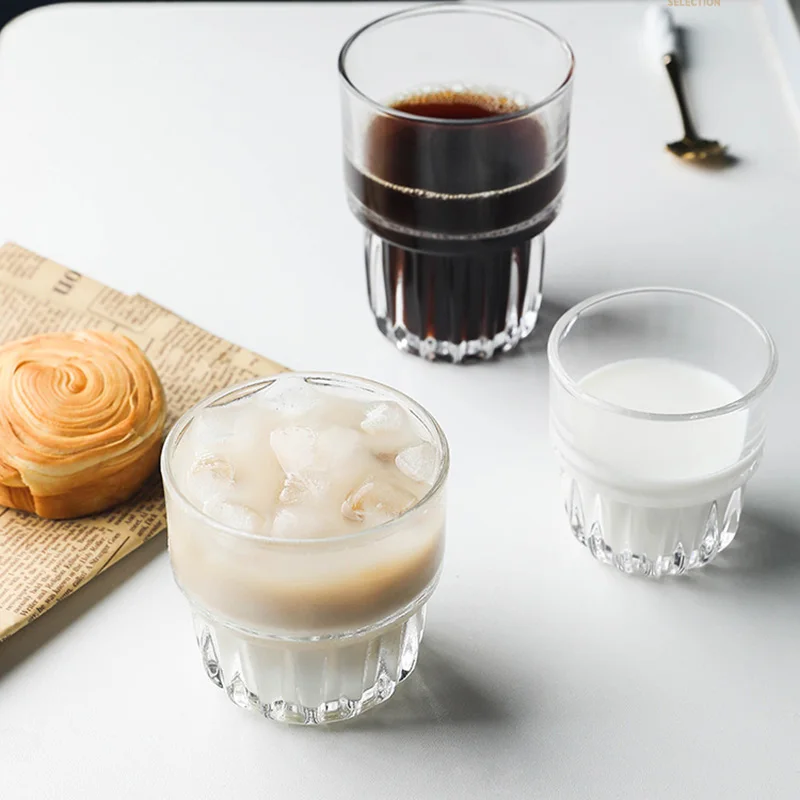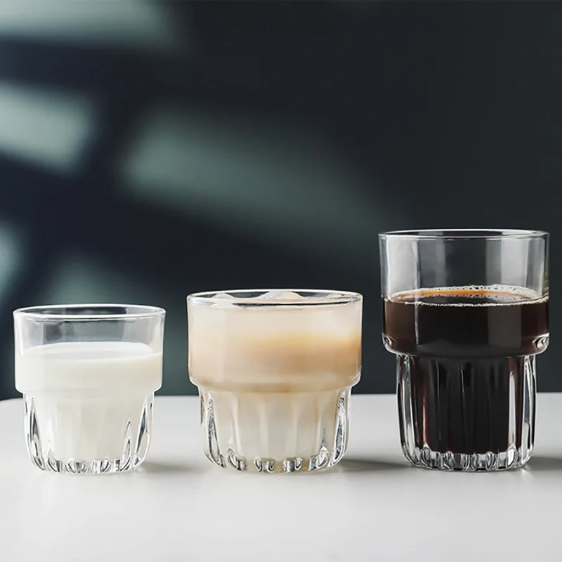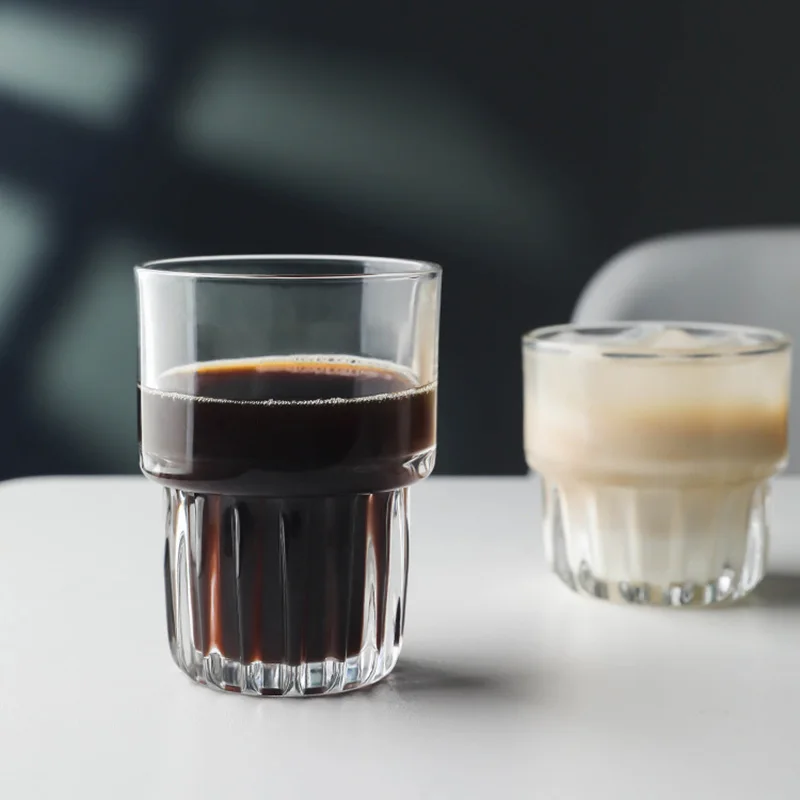 أكواب قهوة أنيقة مصنوعة من الزجاج الحراري الشفاف، مثالية لتقديم الإسبريسو أو القهوة المثلجة أو المشروبات الساخنة. تصميمها العصري يمنح تجربة تقديم فاخرة تضيف لمسة جمالية لأي مطبخ أو كوفي كورنر. مقاومة للحرارة وسهلة التنظيف، مناسبة للاستخدام اليومي في المنزل أو المكتب.