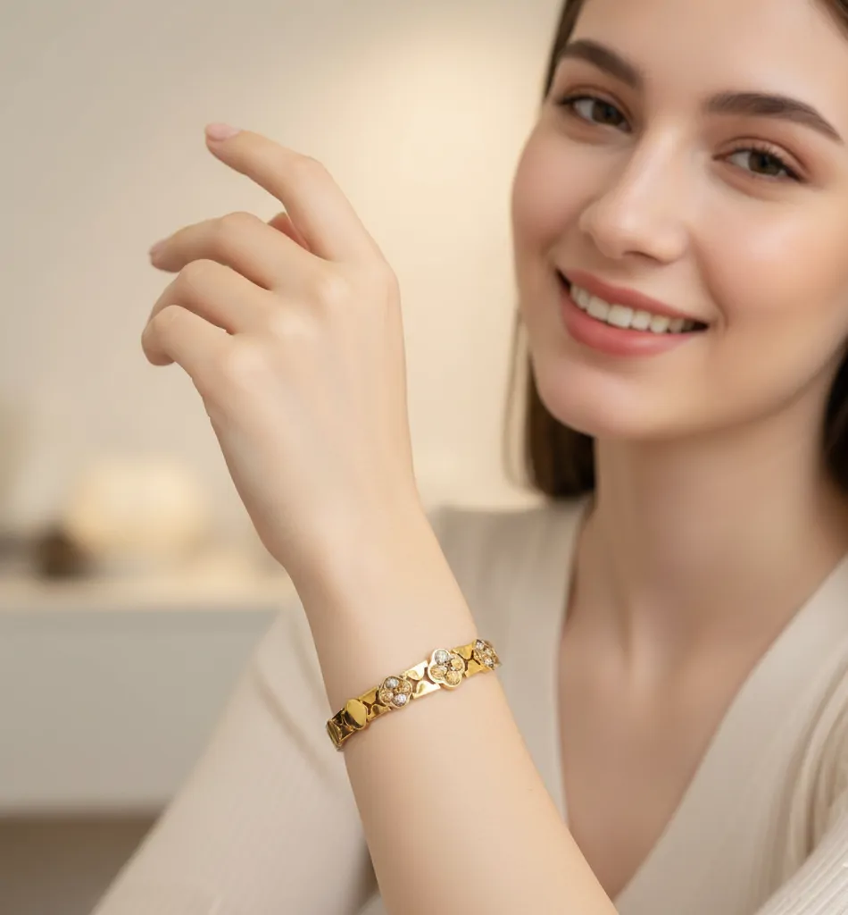 الصفحة الرئيسية اثاث سوارة "آيس إيميرالد" بلمسة الزهور ثنائية اللون